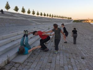 Trappen, lijnen, vlakken, hoeken en wijdse lucht. WijZijn.Dance liet zich inspireren op de prachtige nieuwe lokatie van Nijmegen: De Lentse Warrande.